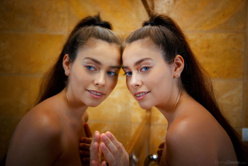 Полюбовавшись в зеркале своим стройным сексуальным телом, голая нимфоманка с сочной бритой пиздой страстно дрочит ее перед работающей камерой. Сидя на столешнице в ванной комнате с выставленной на показ промежностью, горячая цыпочка с упругими сиськами специально раскрывает пальчиками розовые половые губки и крупным планом демонстрирует нам свою влажную мякоть с маленькой щелкой.