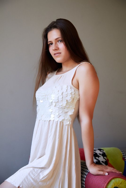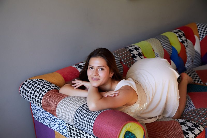 Эротично стянув с себя платье и выставив на показ свои натуральные острые титьки, возбужденная деваха ложится перед нами на диване с широко раскрытой промежностью и, крупным планом показав на камеру растянутые половые губы, без стеснения трахает рабочую глубокую дырку пальцами.