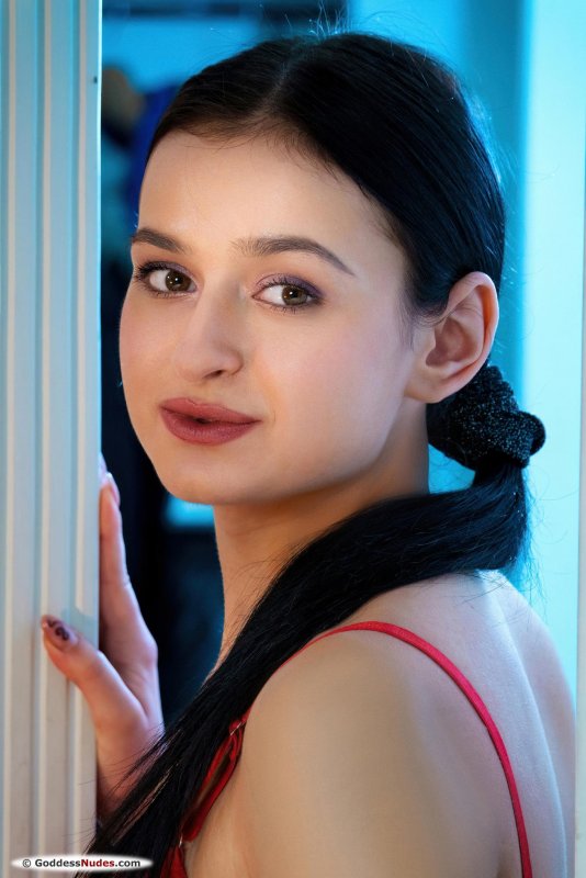 Неторопливо стянув с себя лифчик и игриво поиграв немного с красными трусиками, нежная брюнетка с упругой грудью разделась до гола перед снимающей ее камерой. Эротично извиваясь всем телом на кровати, сексуальная барышня умудрилась не только похвастаться в позе раком своей сочной попкой, но и возбуждающе раскрыла между ног гладко выбритую манящую писечку.