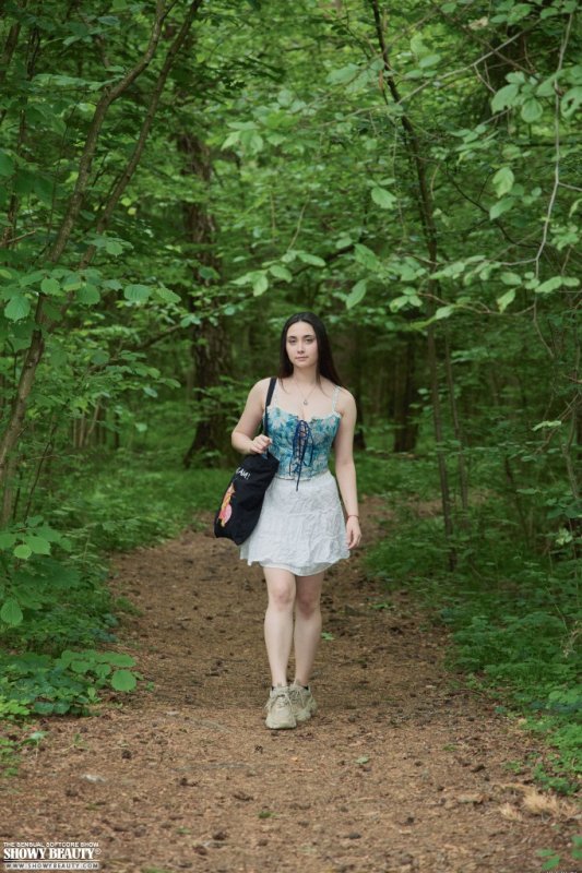 Кокетливо флиртуя со своим фотографом и медленно стягивая с себя легкую одежду, милая брюнетка с аппетитным натуральным телом охотно оголила перед камерой свои огромные дойки в лесу, а потом развратно принялась выпячивать к нам большую жирную жопу с мелькающей между раздвинутыми бедрами маленькой писькой.