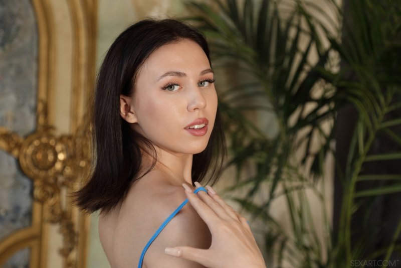 С удовольствием избавившись от всей одежды и хорошенько похваставшись перед камерой своими натуральными сиськами и сочной задницей, развратная бабёнка без комплексов широко на показ раскрывает для нас свою голую промежность и игриво теребит пальчиками бритую розовую письку на стуле.