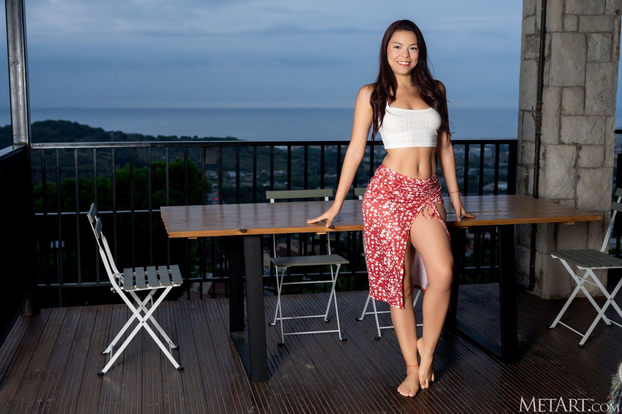 Возбуждающе прогибаясь у стола в импровизированном стриптизе, загорелая брюнетка с красивой упругой попкой снимает с себя всю одежду и, лежа перед камерой с широко раскрытой промежностью, с удовольствием демонстрирует нам крупным планом свою бритую темную пиздёнку.