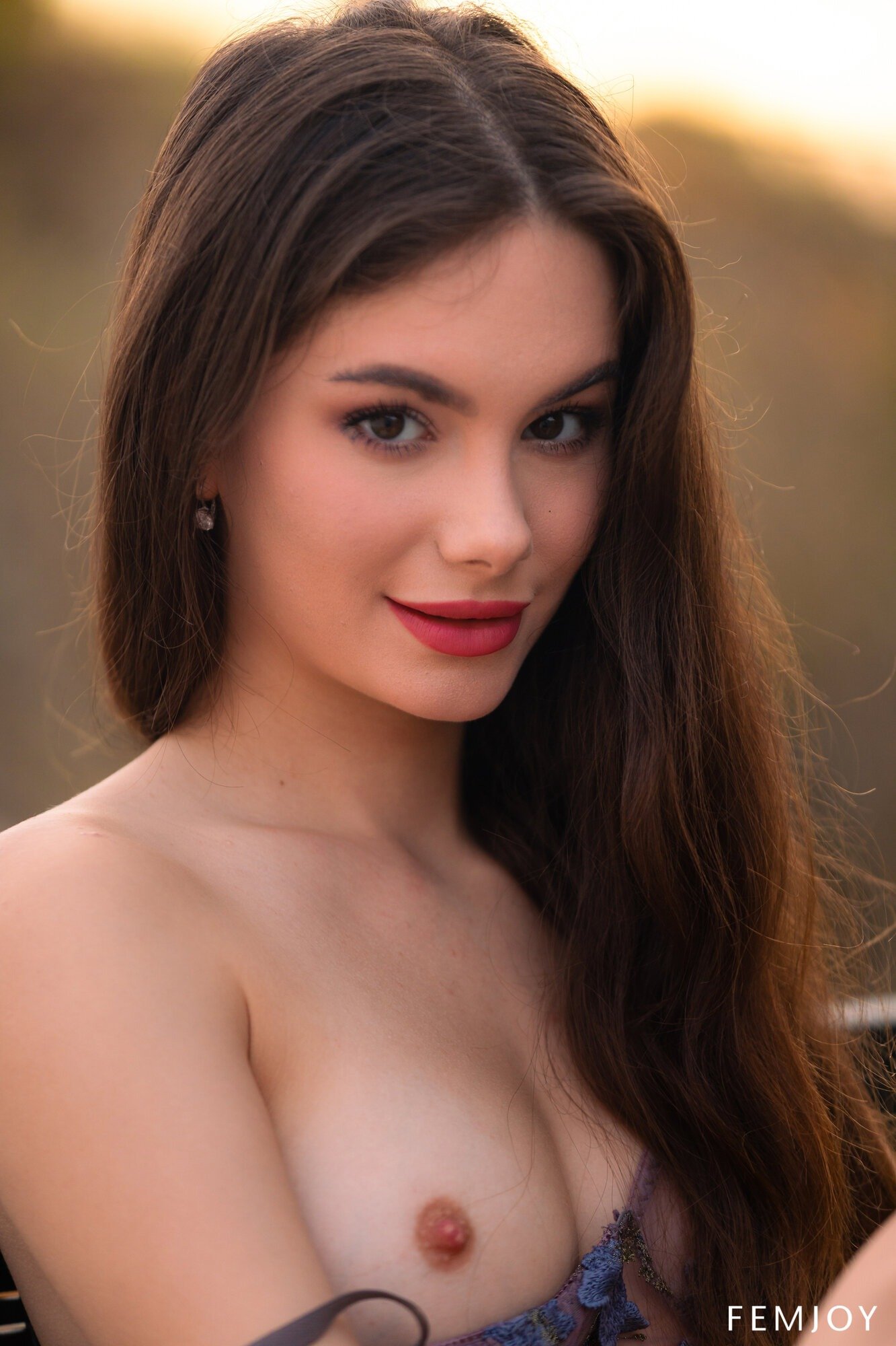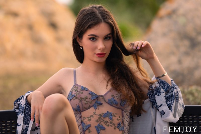 Дерзко стреляя в сторону камеры своими пронзительными взглядами, сексуальная сучка с яркими красными губами возбуждающе медленно снимает с себя халат и кружевное белье. Полностью оголив свое стройное тело, развратная брюнетка ведет себя максимально расслабленно и без всяких стеснения раскрывает между стройными красивыми ножками свою гладкую розовую киску.