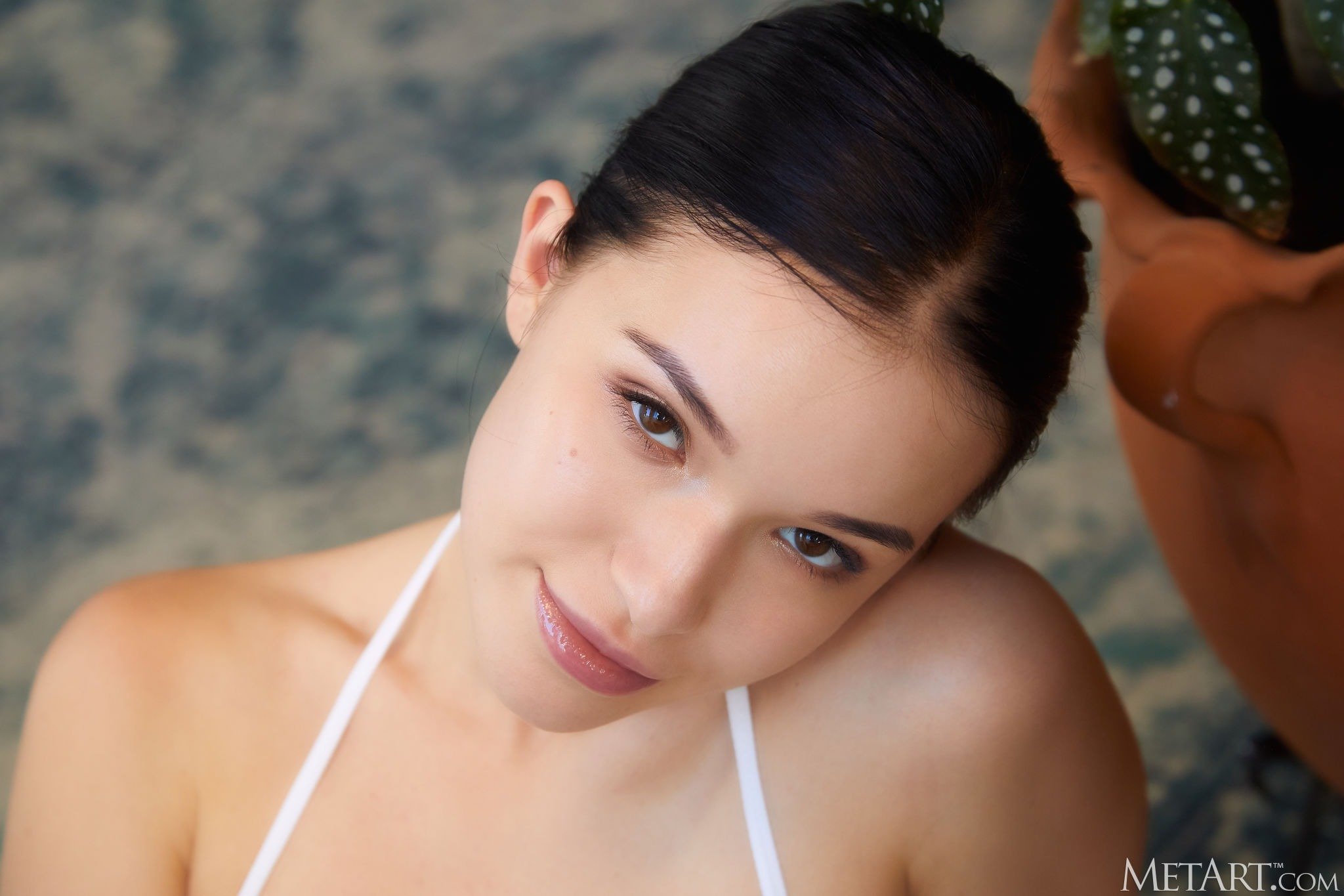 Уверенно и дерзко позируя для нас всем телом, молодая брюнетка в чулках и нижнем белье красуется перед большим зеркалом и постепенно оголяет свои миниатюрные прелести. Раздевшись до гола, красивая девушка с маленькой грудью ложится прямо на пол и с широко раздвинутыми ногами любуется в отражении своей гладко выбритой сладкой киской и очком.