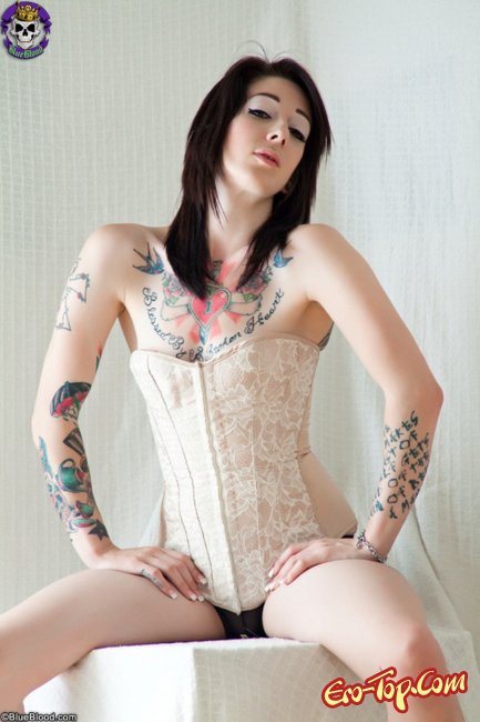 Молоденькая сексапильная брюнетка с большим количеством цветных татуировок по всему телу согласилась полностью обнажиться и продемонстрировать свои пикантные обнаженные места. Сняв легкий корсет и оставшись в одних только черных носочках, озорная красотка бесцеремонно раздвинула ножки, дав запечатлеть свою розовую гладкую аппетитную киску крупным планом. Следует отметить, что у шалуньи стройная фигурка, сексуальная попка и шелковистая гладкая кожа.