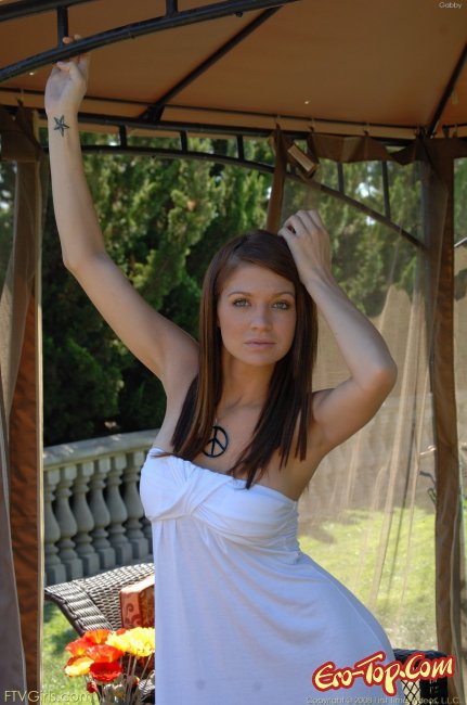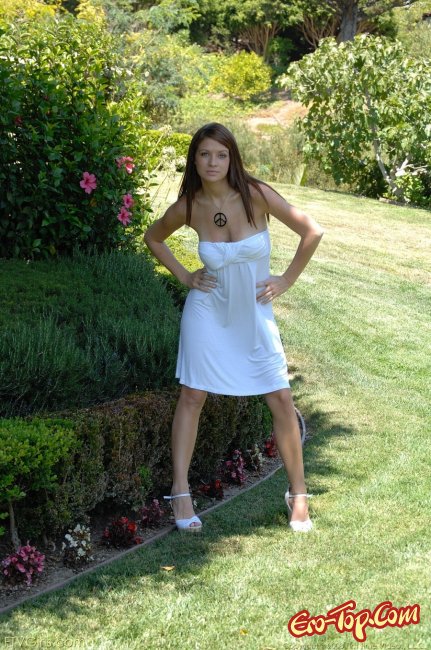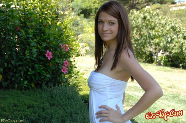 Миленькая девушка не высокого роста в белом платье как у женщин в древней Греции хочет нам показать свое голое тело. Для начала она нам просто позирует, а потом задирает платье под которым нету трусиков и виднеется ее гладенькая киска. Повернувшись к нам спиной детка надеется что вы оцените ее классную попочку с упругой кожей, а ее большие дойки не возможно не заметить. Когда малышка была совершенно голенькой, она встала на четвереньки и вставила в свою киску включенный вибратор и получала наслаждения.