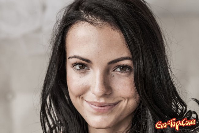 Худенькая девушка с густыми черными волосами и длинными локонами, раздевается догола и показывает свою сексуальную фигурку. Супер модель снимает с себя эротическое платье и показывает голые титьки с круглыми сосками. Потом сучка стягивает с себя трусики и голышом кувыркается в кроватке, показывая свою натертую членом писю.