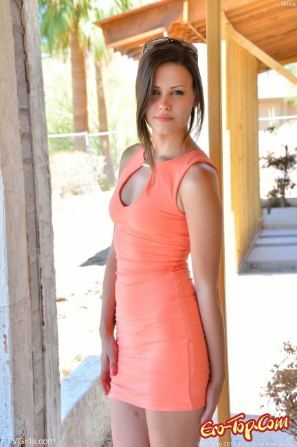 Миленькая красотка в обтягивающим коротком платье, сексуально позирует на эротическом фото в соблазнительных позах. Очаровательная сучка оголяет маленькие груди с острыми сосками и снимает трусики. Потом детка берет толстый дилдо и начинает его совать в свою писю.