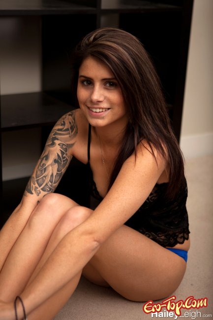 Миленькая девушка в синих трусиках позирует на эротических фото и медленно их снимает. Сперва очаровательная брюнетка оголяет свои красивые упругие груди и трогает их руками. Затем сучка ложится на пол на животик показывая попку, а потом оголяет свой персик и стоя в полный рост демонстрирует писю.