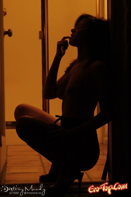 Пышногрудая красотка в нижнем белье черного цвета, демонстрирует свою стройную фигурку. Брюнетка стоит на тонких шпильках в дверном проёме и показывает большие упругие груди с потвердевшими сосочками. Очень сексуально смотрится её силуэт в затемненной комнате. При свете губастая сучка поворачивается и выставляет аппетитную попочку, покрытую маленькими пупырышками.