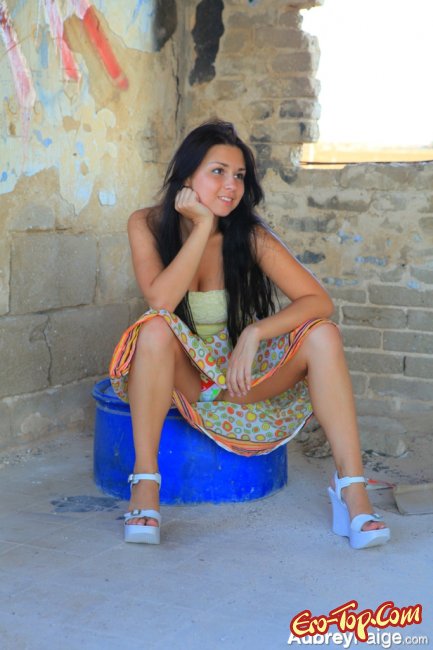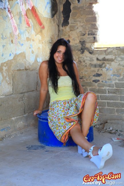 Шикарная молоденькая брюнеточка отправилась в какое-то заброшенное здание, чтобы показать себя во всей красе. Малышка с большой грудью игриво начала обнажаться, оголяя свои сладкие места. Под одеждой скрывалась гладко выбритая киска и аппетитная упругая грудь с набухшими сосочками. Следует отметить, что у этой девушки красивая чарующая улыбка, небольшая татуировка на запястье и пирсинг в пупочке, это еще больше повышает градус.