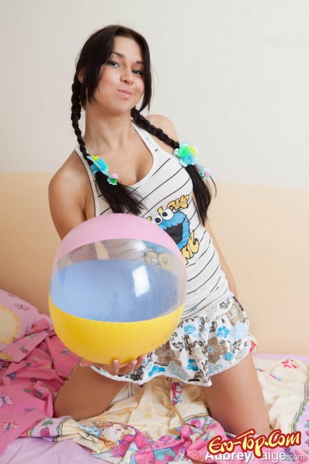 Молодая грудастая брюнетка заигрывает с фото камерой и с нами. Девушка с двумя милыми косичками медленно раздевается, сперва снимая майку, а затем и трусики под короткой юбочкой. Красавица показывает нам свой язычок, здоровые титечки, пышную попку и красивую киску. Очень зажигательная и озорная брюнетка!