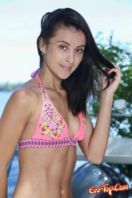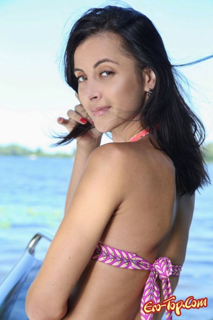 Молодая привлекательная девушка с выразительной восточной внешностью катается на катере и между делом решает снятся в эротической фото сессии. Красотка снимает розовый купальник и оказывается голенькой, демонстрируя при этом своё стройное, я бы даже сказал, худое тело. У неё маленькая грудь, плоская попка и красивая бритая киска, а в целом же девушка очень даже ничего, многие, я думаю, не отказались бы от её компании...
