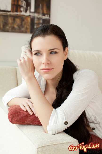 Симпатичная эротическая модель Valeria Alexa медленно раздевается до гола, лёжа на диване. Девушка стягивает с себя трусики и открывает нам прекрасную киску, гладко выбритую с нежными половыми губками. Брюнетка раздвигает половые губки, а в конце фото сессии засовывает в письку пальчик..