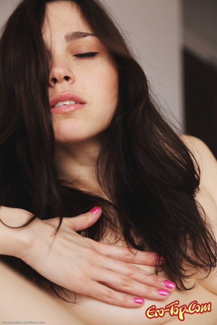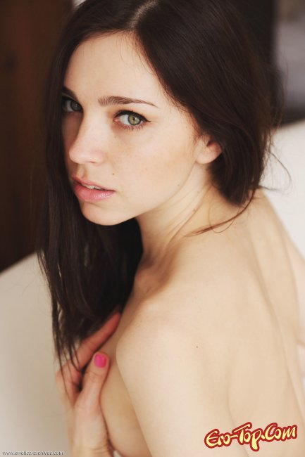 Сексуальная голая брюнетка позирует на большом диване. Девушка принимает различные позы, в том числе, демонстрирует нам свою попку сзади, поворачиваясь к нам спиной и наклонившись - вид очень возбуждающий. Так же у брюнетки отличная упругая грудь, смазливое личико и сексуальная фигурка...