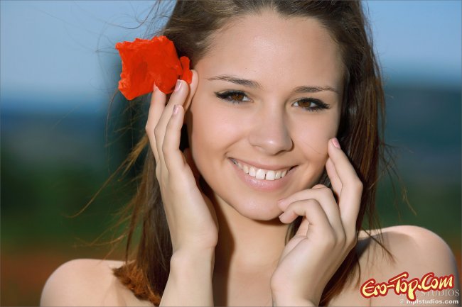 Красивая молодая брюнетка с шикарным телом раздевается в поле тюльпанов и позирует голая перед фото камерой позволяя зрителю насладиться её упругими формами.