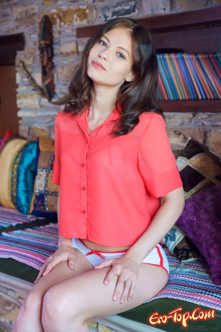 Прекрасная красавица раздевается догола перед фотокамерой и совсем не стесняется показать свои самые откровенные части тела. Красивая девушка снимает блузку, трусики и лифчик что бы оказавшись голой продемонстрировать своё восхитительное стройное тело с очень возбуждающими формами. У милашки небольшая грудь, шикарнейшая попка и симпатичная бритая киска с нежными половыми губками, которые девушка обнажила для нас с раздвинутыми ногами. Восхитительная модель заслуживающая самых высоких оценок!