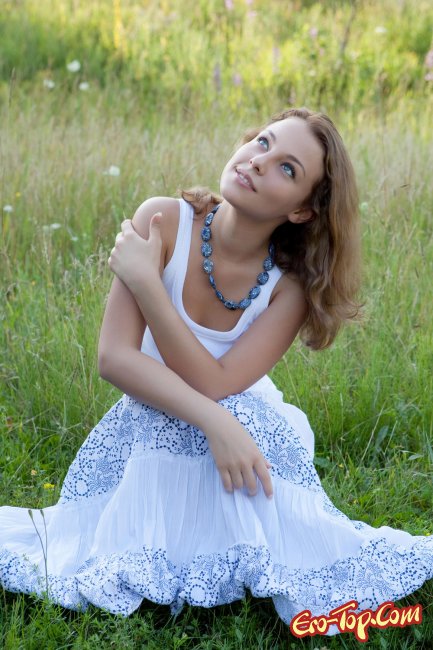 Привлекательная смазливая шалунья соблазнительно разделась на природе и продемонстрировала красивое стройное тело в лучах солнца. У этой бестии соблазнительная маленькая грудь и гладенькая киска, которая не была показана как полагается, но общей картины это не испортило, ведь это с лихвой компенсировали другие прелести молодки, чего только стоит соблазнительный взгляд и игривая улыбка.