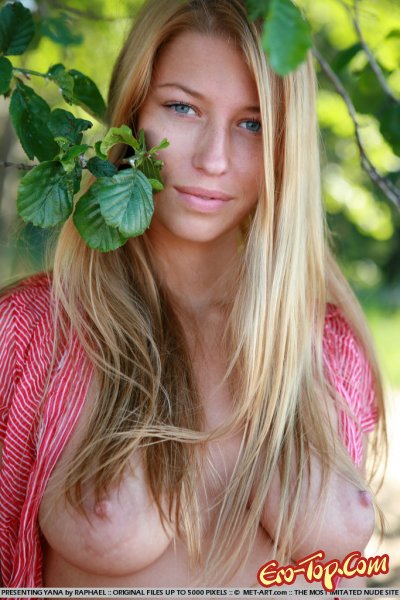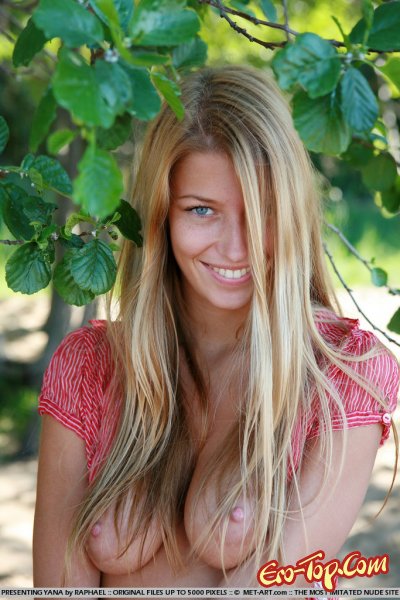 Красивая голая девушка блондинка и её яркие фото на природе. Весёлая девушка в окружении зелёных деревьев и песка, её улыбка бесподобна, а страсть с которой она смотрит в камеру, наводит возбуждающие и немного романтические мысли в наши головы.
