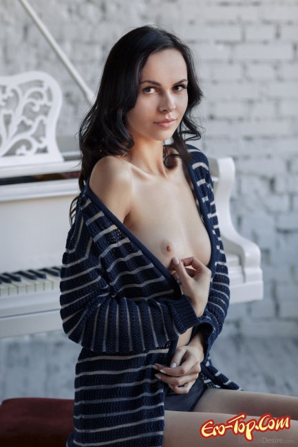 Эротика » Красивая эротика » Брюнетка оголяет сексуальное тело сидя за роялем