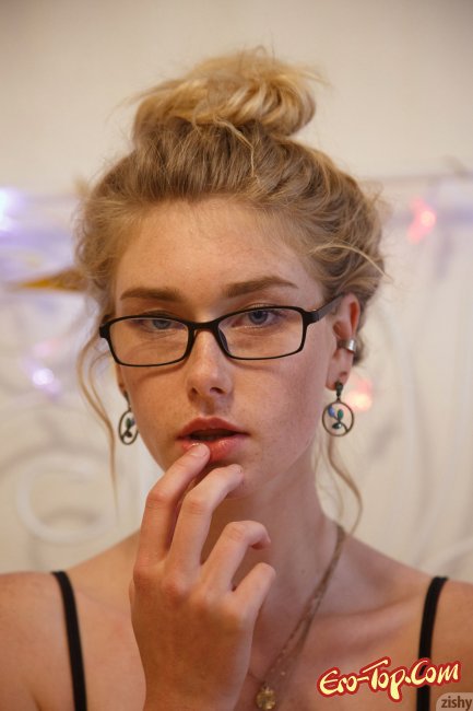 Рыжеволосая девица в веснушках, расположившись в постели, принялась читать книгу в очках и параллельно эротично позировать. В какой-то момент красотка начала немного стягивать с себя нижнее белье, засвечивая упругие булки, а так же натуральные сиськи, прикрывая их рукой.