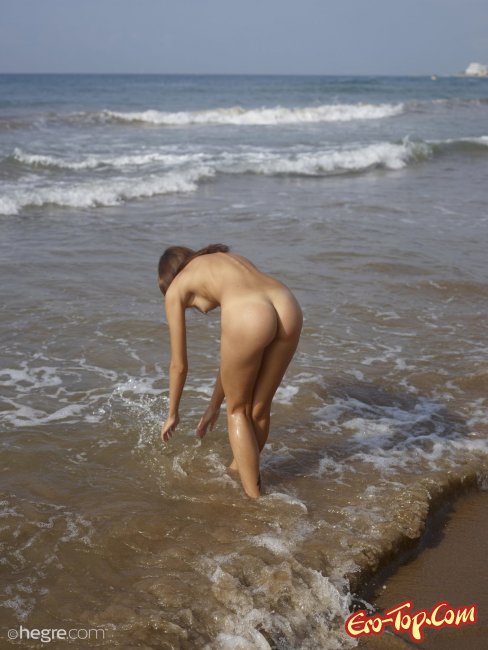 Миленькая шатенка с маленькими сиськами и пирсингом в торчащих сосочках, полностью раздевшись, начала купаться в море. Намочившись, молодая девушка принимала разнообразные позы, в которых лучше всего демонстрировала бритую письку с мокрыми половыми губками и упругую попку.