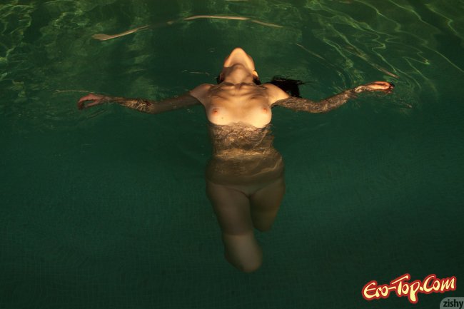 Эротика » Красивая эротика » Голая девушка с красными губами плавает в бассейне