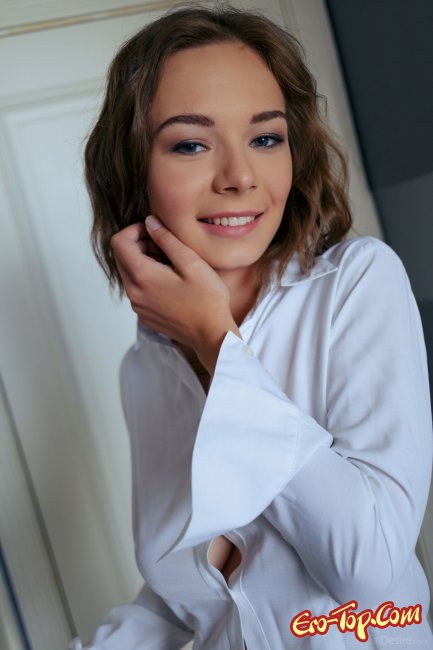 Красивая девушка в белой рубашке на голое тело и черных чулках без трусиков, закрылась в гостиничном номере с фотографом и принялась эротично позировать, постепенно обнажая свои прелести перед камерой. Играючи и соблазнительно молодой девушке удалось показать нам бритую письку, грудь небольшого размера и другие прелести.