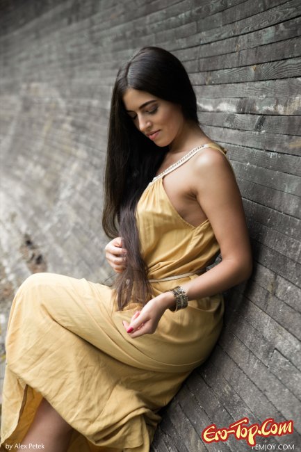 Красивая голая брюнетка с сексуальным телом и милым личиком, полностью раздевшись, возбуждающе демонстрирует себя и свои прелести в заброшенном судне. В процессе съёмки девушка старалась принимать самые разнообразные позы, делая акцент на натуральных сиськах и бритой письке.