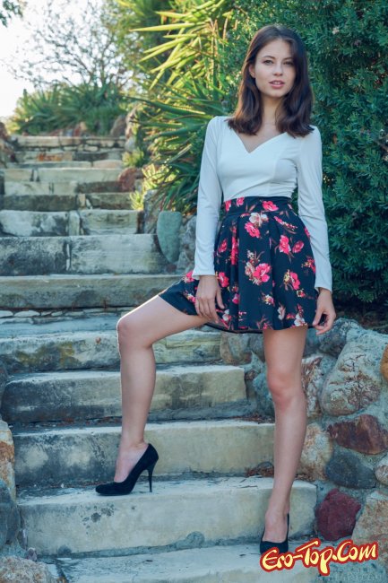 Прогуливаясь в парке, красивая девушка с милой улыбкой начала спускать юбку, а после снимать трусики. Брюнетке хотелось полностью оголится и продемонстрировать сексуальное тело, что она собственно и сделала, засвечивая маленькие сиськи и гладко выбритую дырочку, чередуя в процессе разные позы.
