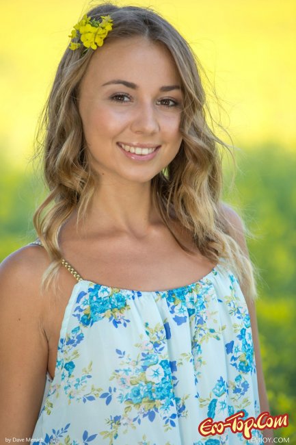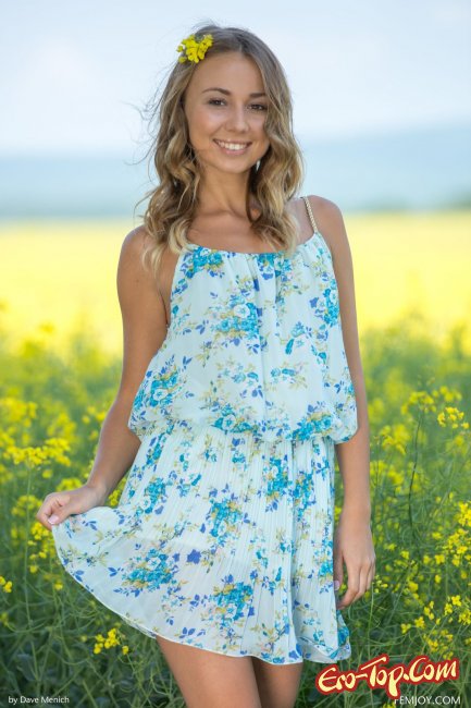 Молодая обнажённая девушка со стройной фигурой, оказавшись среди цветов в поле, начала сексуально позировать перед камерой. Как только блондинка освоилась и привыкла к фотографу, она принялась вызывающе демонстрировать свои прелести, показывая маленькие сиськи, бритую письку, а вставая раком, красавица демонстрировала упругую попку.