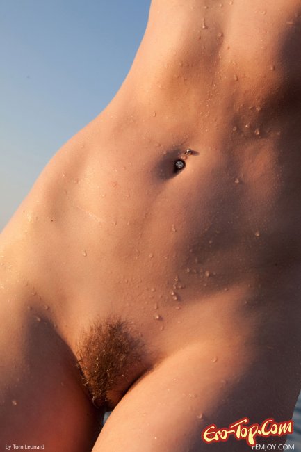 Сексуальная девушка с волосатым лобком и упругой попой, полностью раздевшись, начала позировать перед камерой, забираясь в воду, где она намочила своё подтянутое тело. Нежно лаская себя руками, молодая красотка демонстрировала нам маленькую грудь с торчащими от прохлады сосками, а вставая раком, она показывала шикарную попку.