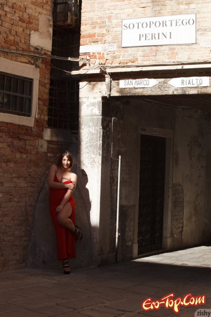 Аппетитная девушка с выдающимися формами, нарядившись в красное платье, начала гулять на улице, а обнажившись перед камерой, она показала пышную грудь и другие возбуждающие части своего тела. Вскоре девица расположилась в каюте яхты, где раздевшись полностью вставала раком, показывая упругую попку с бритой киской.