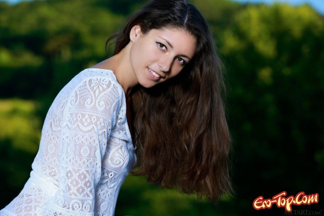 Красивая девушка со стройной фигурой, оказавшись в горах среди цветов, начала грациозно позировать и медленно стягивать белое платье, после чего, обнажённая красавица позволила взглянуть на свои прелести. Возбуждающая девушка не стеснялась принимать самые откровенные позы, она даже вставала раком, желая подарить нам восхитительные фото.