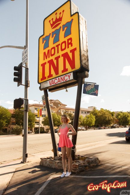 Прогуливаясь на улице, молоденькая девица в розовеньком платье, без лифчика, вдруг принялась чередовать максимально эротичные позы, а отыскав укромное местечко без людей продемонстрировала волосатую письку. Конечно же для этого обворожительной милашке пришлось стянуть трусики, ощущая от происходящего одно удовольствие.