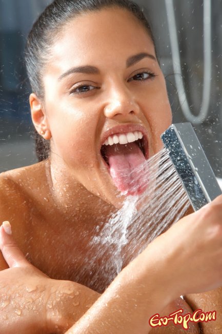 Эротика » Красивая эротика » Сексуальная брюнеточка обливается водой в душе