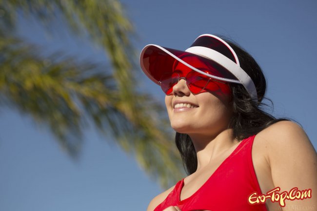 Располагаясь на шезлонге рядом с бассейном, сексуальная брюнетка в необычном купальнике с голыми сиськами соблазнительно позирует перед фотокамерой. Принимая различные откровенные позы и обнажая новые участки своего тела, девушка позволила нам насладиться всеми её прелестями. Но прежде всего в глаза бросается шикарная грудь красавицы, она не большого размера, но с очень красивыми сосками...