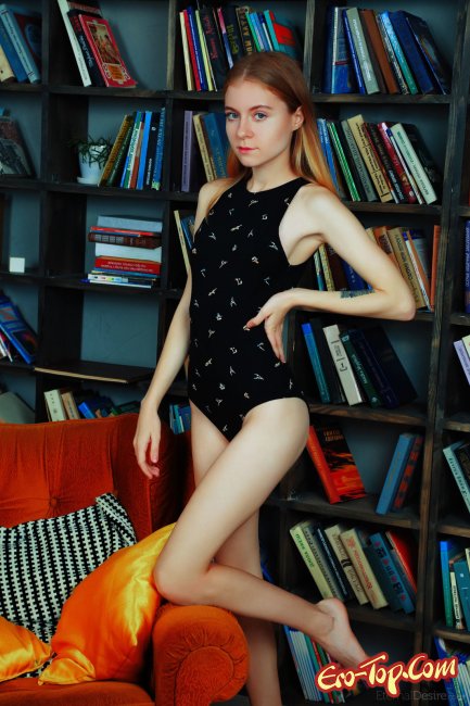 Нарядившись в вызывающий наряд, красивая стройная куколка начинает соблазнительно позировать на камеру, в будущем медленно снимая темное боди, после чего она показала нам голое тело, начиная демонстрировать сексуальную бритую письку, а уже после маленькую грудь с возбужденными сосками. А полностью оголившись, рыжая девушка прогибается раком и раздвигает упругие ягодицы.