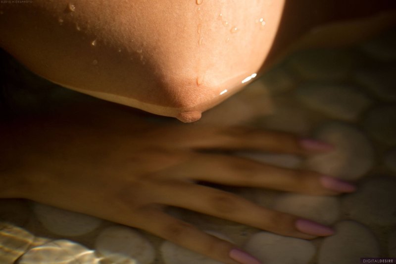 Позируя у бассейна и медленно снимая купальник, стройная молоденькая девица с красивыми натуральными сиськами забралась в воду, в процессе эротично намочив бритую киску. В будущем очаровательная крошка присаживалась на ягодицы и переворачиваясь на животик, что так же позволяло продемонстрировать сочную подкаченную попочку.