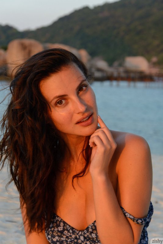Начав позировать в платье и очках, сексапильная девушка возбуждающе приоткрывала ротик, а переодевшись в купальник отправилась на пляж, где продолжая начатое нежилась в воде. В процессе очаровательная крошка чередует разные позиции, а под конец полностью оголяется, засвечивая маленькие сиськи с волосатой писькой.