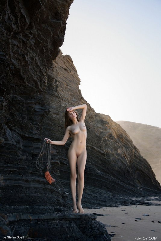 Очаровательная обнаженная и невероятно красивая модель высокого роста, начав позировать рядом с морей у скал, в процессе чередовала разные эротичные позиции, демонстрируя упругую натуральную грудь. Помимо шикарных сисек, молоденькая девушка так же показала гладко выбритый лобок и письку с плоским животиком.