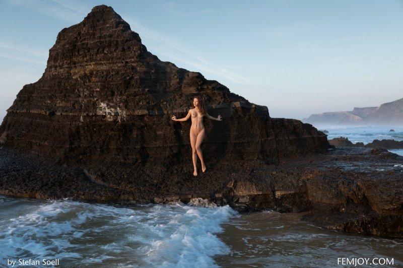 Оказавшись ранним утром на море, шикарная красотка с упругими сиськами и с сексуальным телом начинает эротично позировать и перед камерой, демонстрируя свои прелести. После того как крошка с натуральной грудью искупалась в воде, она отправилась к растущим неподалеку кустам, где и закончила демонстрировать волосатую письку с попкой.