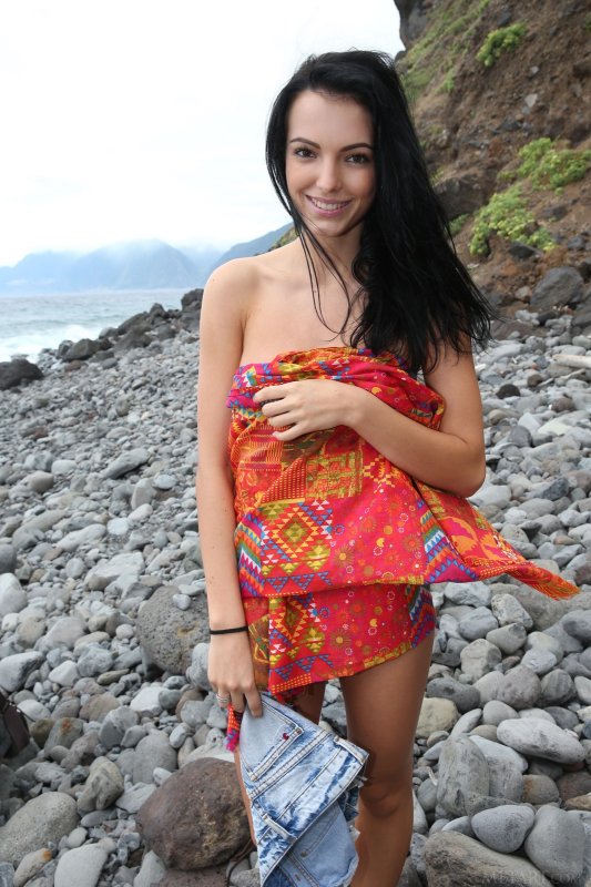 Найдя самое безлюдное место на пляже, молоденькая и достаточно симпатичная брюнетка с милой улыбкой, скинув все вещи, показала голое и невероятно сексуальное тело, параллельно ощущая удовольствие и возбуждение. В процессе крошка старалась чередовать разные позы, прогибаясь раком и раздвигая ножки, что позволяло подробно засвечивать попочку с гладко выбритой писькой и маленькую грудь.
