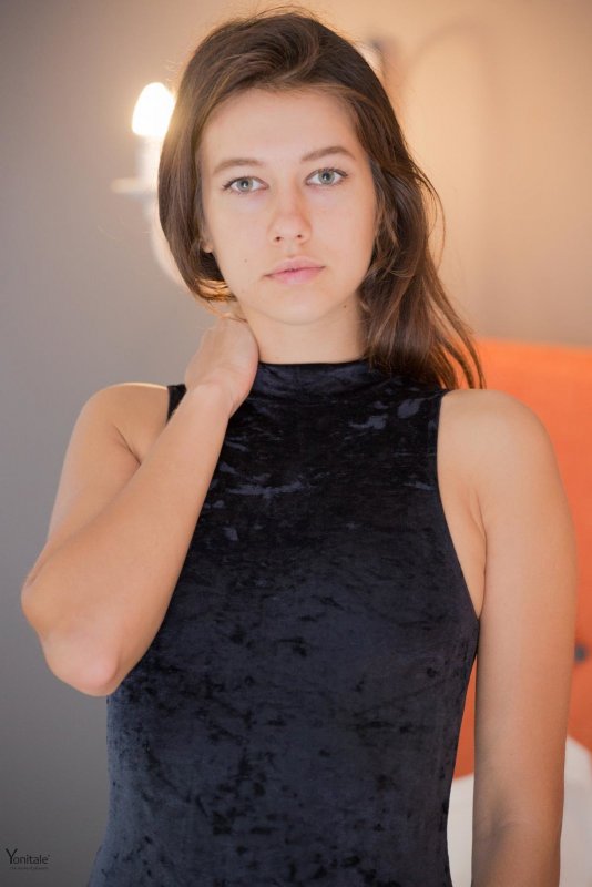 Молоденькая красотка со стройной фигурой, устроившись на белых простынях в постели, начинает эротично позировать и оголять сексуальное тело, снимая бархатное боди. В обнаженном виде молоденькая очаровательная крошка с маленькими сиськами возбуждающе раздвигала промежность и нежно трогала пальчиками гладко выбритую письку.