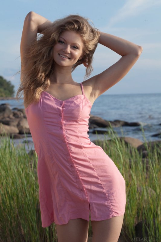 Молодая скромная девушка с зажигательной улыбкой в тоненьком розовом платье, позируя на природе рядом с морем, в процессе медленно оголилась, а ложась на песок показала нам свою красивую бритую писю и упругую попу. Стоя на коленках, стройная милашка с упругой грудью оттопыривала сочную попку, а переворачиваясь и раздвигая промежность засвечивала бритую письку с небольшим количеством волосиков на лобке.