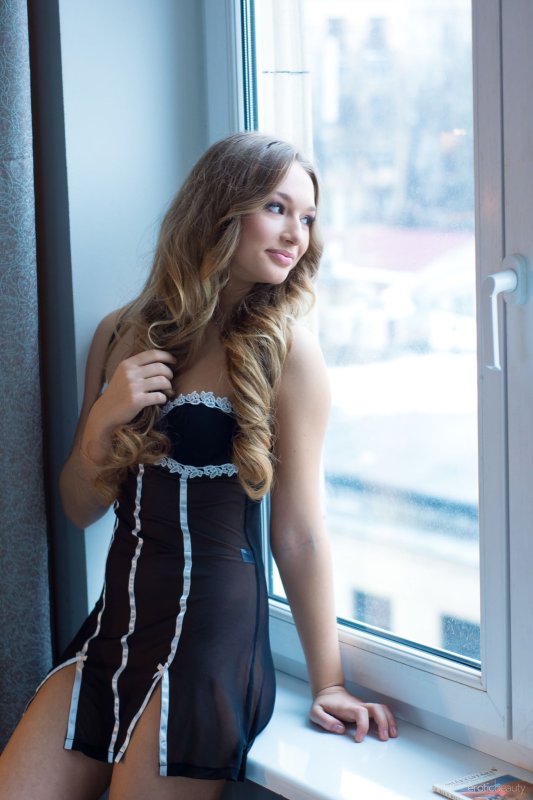 Эротика » Красивая эротика » Девушка в пеньюаре и чулках позирует на подоконнике