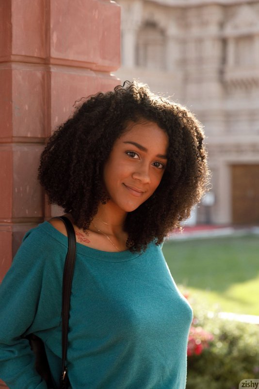 Прогуливаясь в разных местах по улице, красивая негритянка наслаждалась теплым летним днем, а в какой-то момент решила немного порезвиться на камеру, и задрав кофту, она показала натуральные висячие титьки. Сделав это, молодая девушка продолжила свои шалости, в процессе мило улыбаясь и даже поворачиваясь к нам попкой в спущенных джинсах.