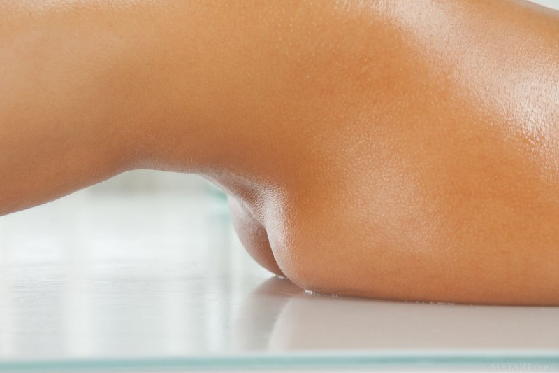 Располагаясь на столе, красивая блондинка намазала шикарные сиськи и аппетитную жопу маслом, старательно натирая им упругое тело. При этом, блестящая красотка не стеснялась принимать самые сексуальные и откровенные позы, демонстрируя перед камерой ещё и бритую киску, от которой невозможно оторваться.