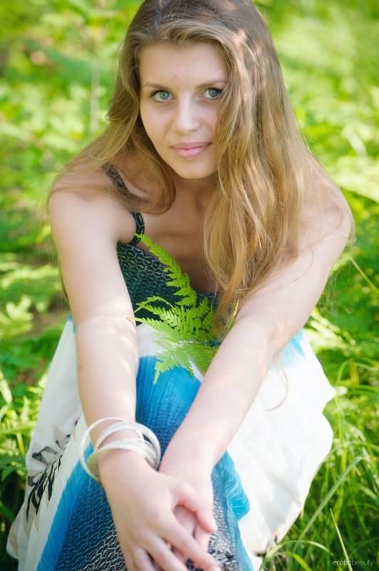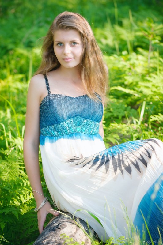 Начав эротично позировать и наслаждаться природой в лесу, милашка с плоскими сиськами, скинув длинное платье, строит глазки рядом с деревом. В процессе сексуальная нагая красотка так же подробно демонстрировала бритую письку, для этого присаживаясь на бревно и широко раздвигая ноги.