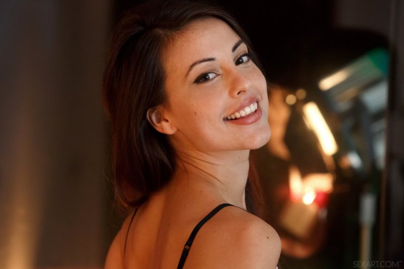 Устроившись на кровати, привлекательная девица с милой улыбкой начинает эротично позировать в кружевных трусиках и лифчике. Прогибаясь раком и поднимая ноги вверх, сексуальная стройняшка с худенькой талией и плоской грудью все же стягивает нижнее бельё и подробно засвечивает письку с короткими волосиками.
